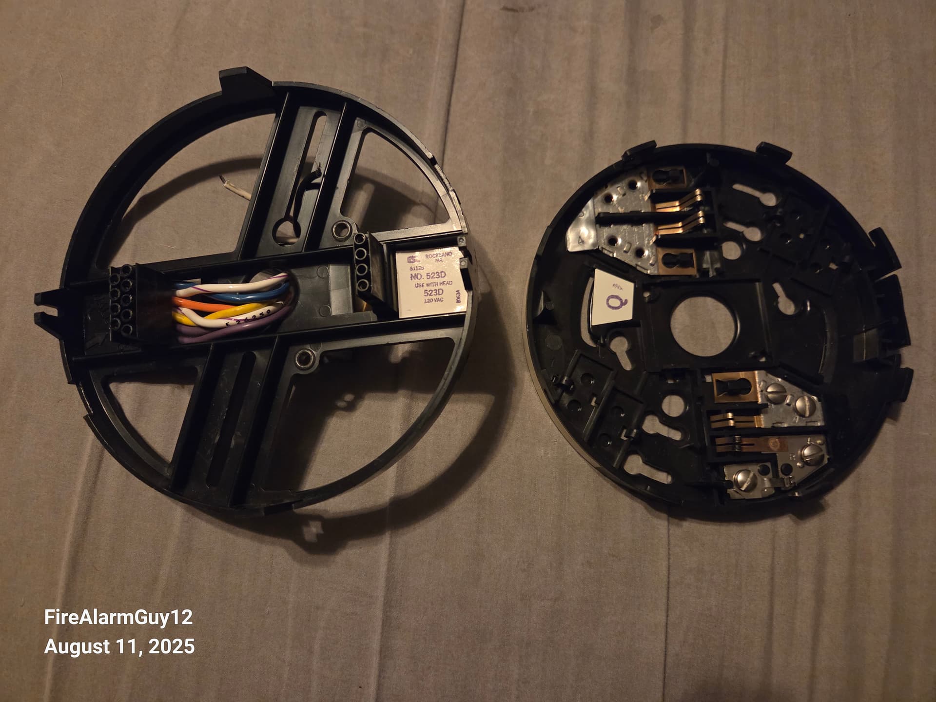 On the right is my Simplex 4259-36 (I forget the ESL model). Visually, it looks almost exactly like the 523D, but it uses a twist-on type of base. Unlike the other two, it also uses screw terminals instead of wire leads (and is also 2-Wire). Due to the new base, there is no longer any removal text. Finally, this is what I’ll call the 3rd generation.