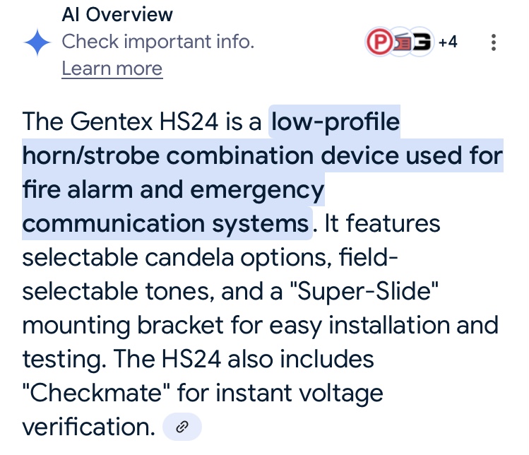 If you look at its sources, one of the top sources is Potter. I think it got confused because Potter calls the Commander 2 and 3 devices the “HS” series: HS-24 Selectable Candela Wall Mount Horn | Potter Electric.