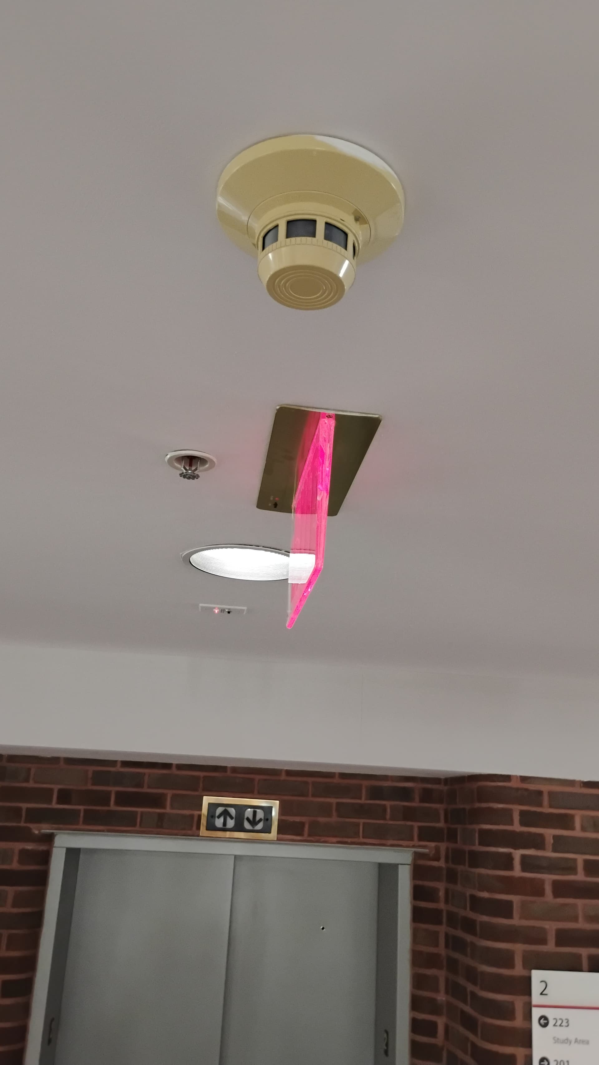 A surprisingly varied amount of smoke detectors in that building. Any idea what’s with multiple in the same spot though?