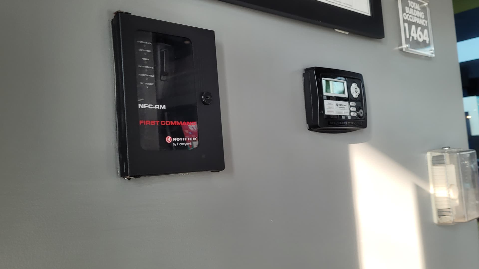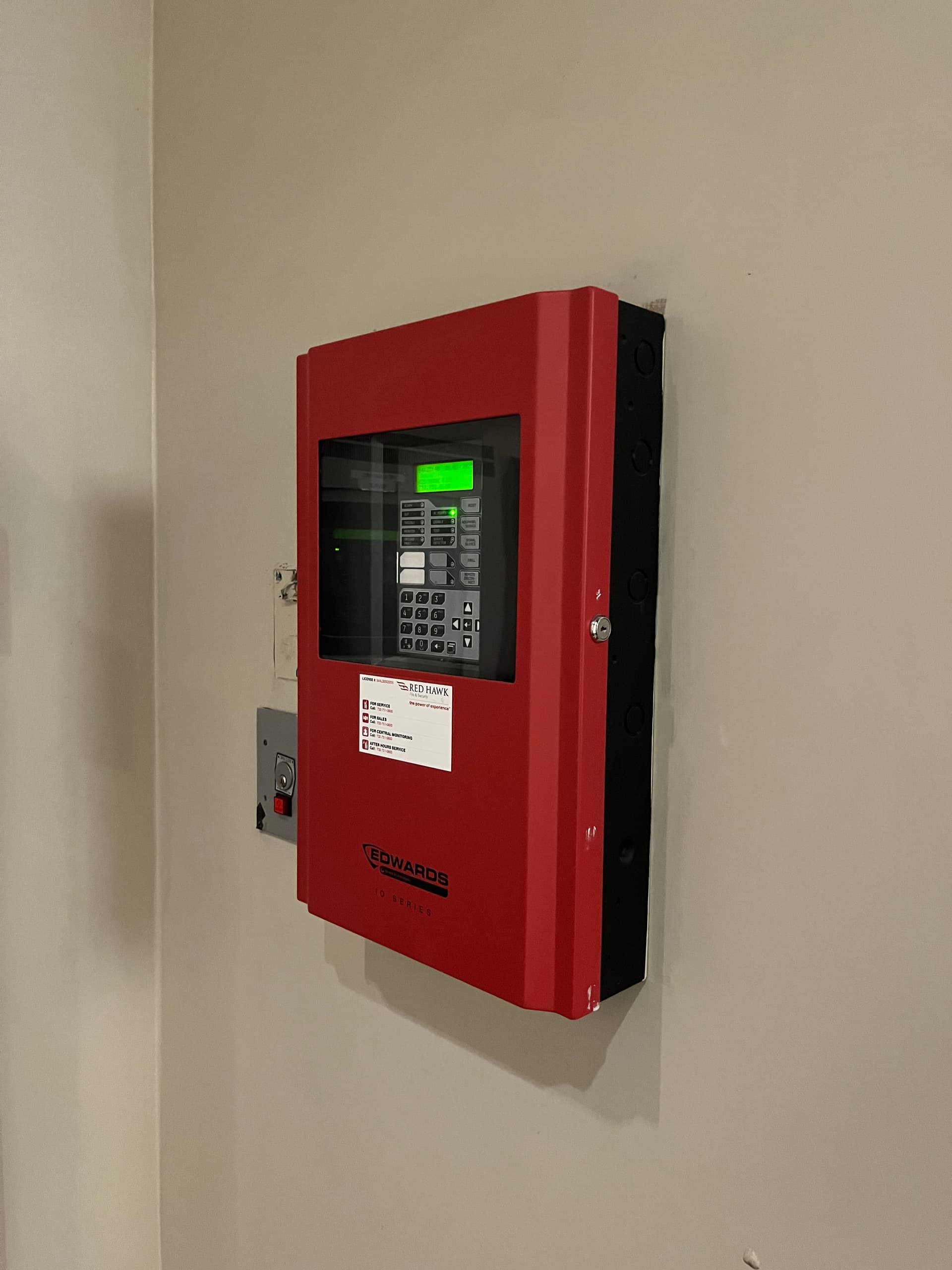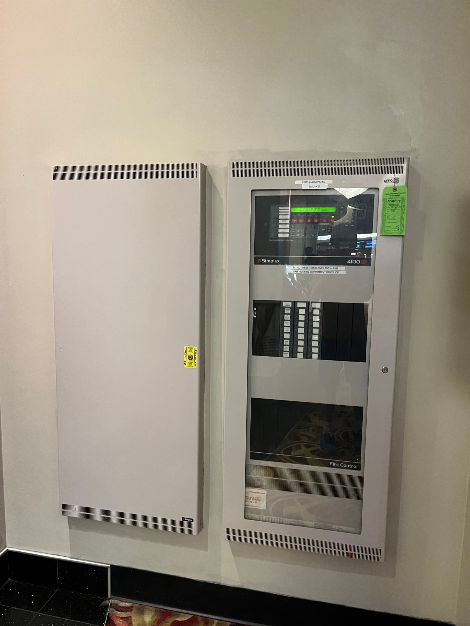Edwards/EST IO64 next to the above Simplex 4100ES panel. Not too sure what this is here for, my guess is suppression/agent release or for a nearby store.