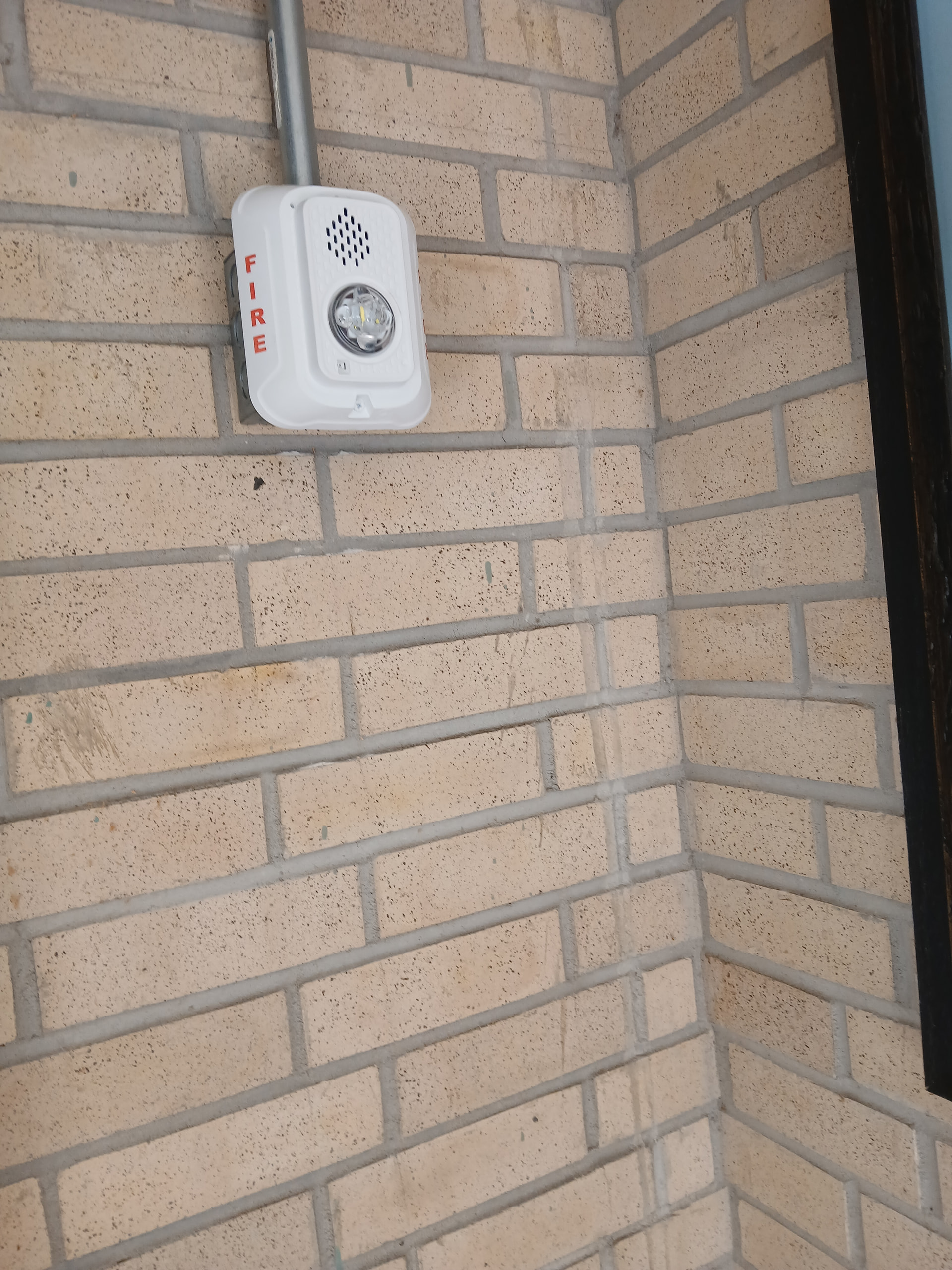 You can see that the devices are marked “ALERT”, and I’m sure they will be used for mass notification. I like that they are using remote speakers in addition to meeting the strobe requirements to ensure good voice intelligibility. As of now, I’m unsure whether this is a Simplex system or an Autocall system. I’ll try to report back later if I can find more information, or if I go there in person.