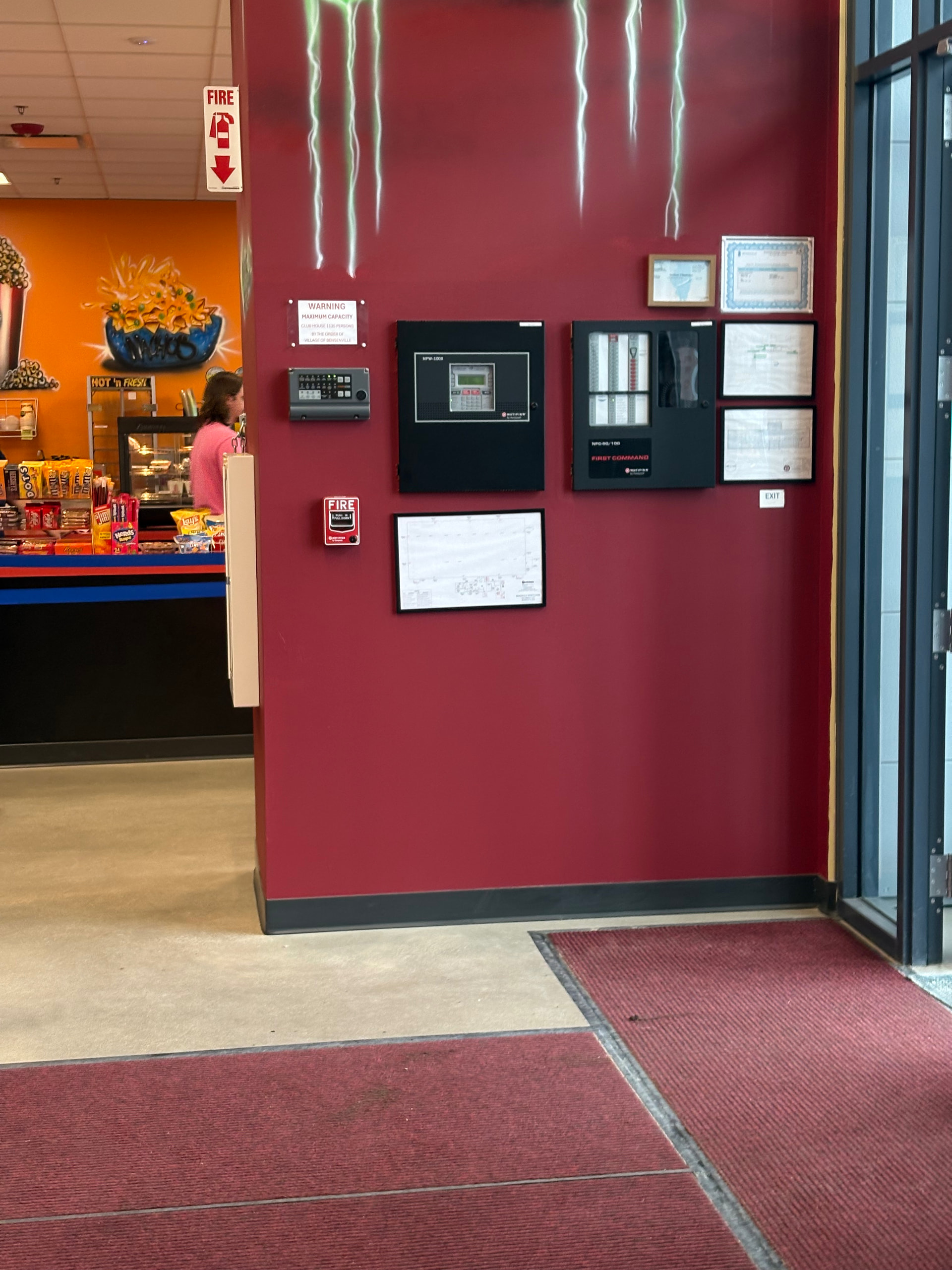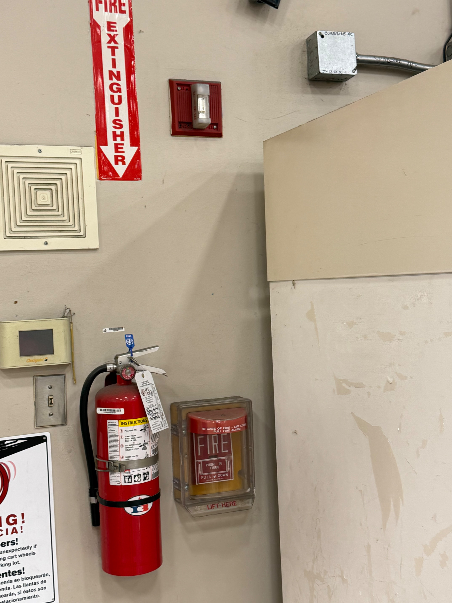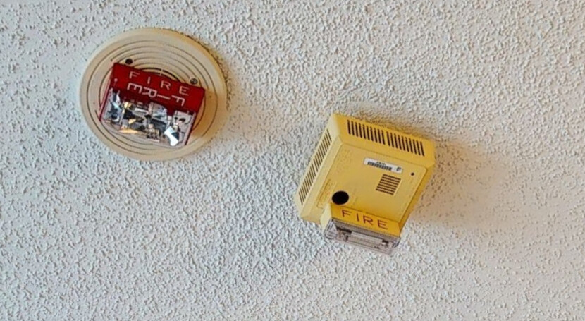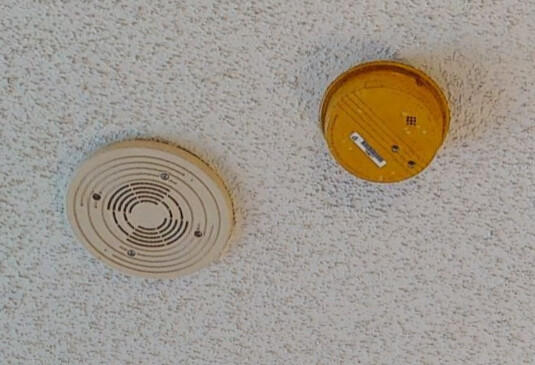 Okay then…that’s quite an interesting setup…(wonder how they got both ceiling & wall-mount lettering on that 4904 at the same time): guess the system eventually needed visual notification in that spot (but apparently not the other one for some reason) & so they did that instead of putting up an actual TrueAlert ceiling-mount speaker/strobe, heh. Those smoke detectors (especially the diamond-grille Kidde/Lifesaver) have definitely seen better days as well, heh.
