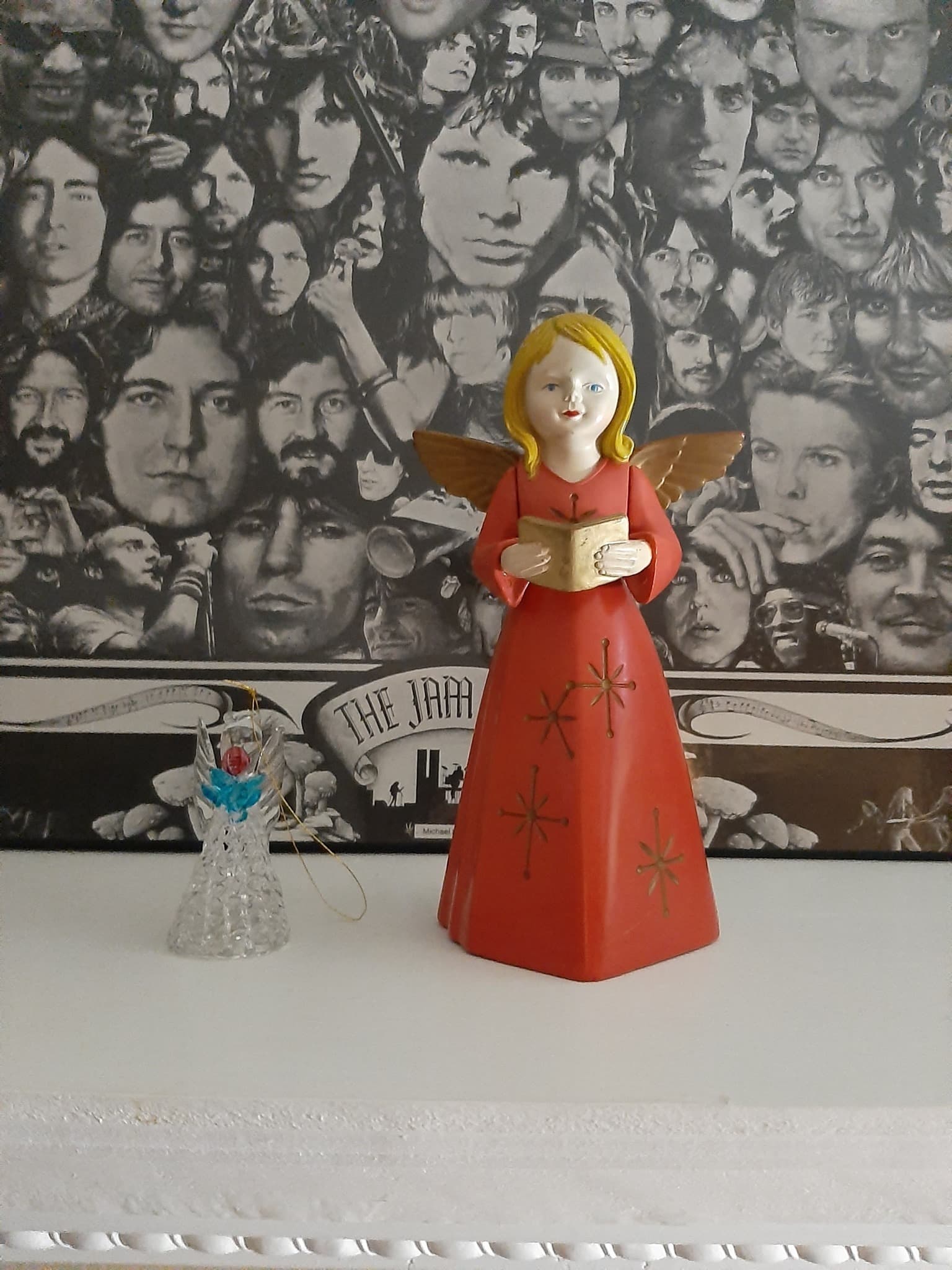 Here is a picture of it from a while ago sitting on the mantle beside a smaller crystal angel ornament. This detector is so pretty she even looks like she is getting ready to sing Christmas songs from her choir book. I guess Christmas tree “ornament” detectors were not a new idea! There is a test strip on the base of the unit and it isn’t as loud as regular squealer horns of that time. Still a very cool unit and the casing is a plastic mould. These units must have been mass produced because they pop up on Ebay, Mine unfortunately didn’t come with the original packaging as it is second hand.