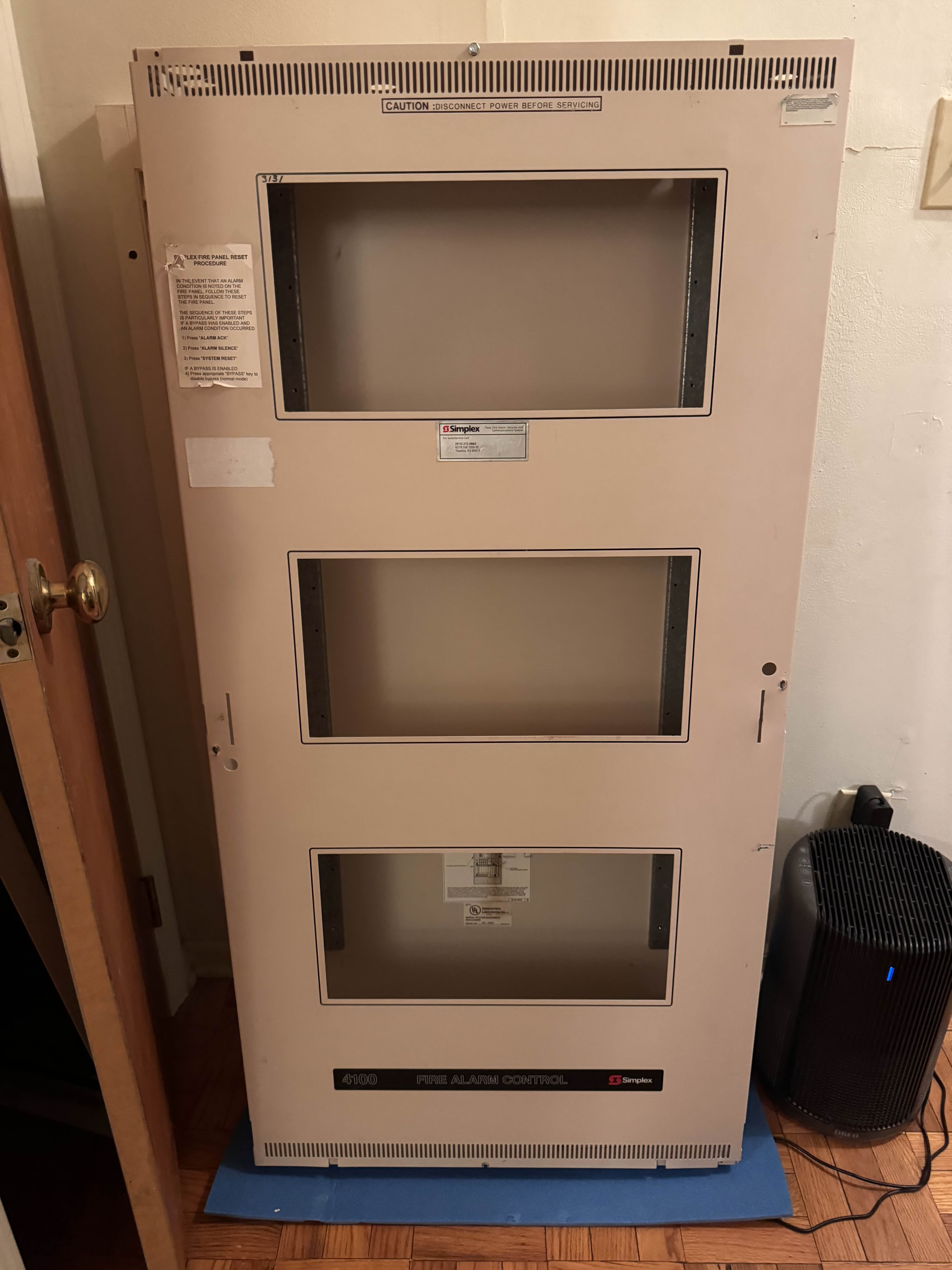 I recently purchased a 3-bay enclosure for a Simplex 4100+. I plan to build the panel over the next couple months, starting with the master controller bay. I’m hoping to build the panel with MAPNET II, voice evacuation, zoned inputs, and as many LED switch cards will fit in the cabinet. The panel will also be on the latest firmware available (9.02.21) and be equipped with networking capabilities, just without the “4120” branding commonly seen on the dress panels of network-spec’d panels.
