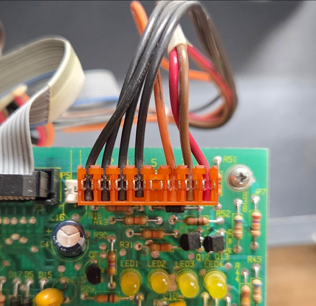 Been doing some further metering at one of the wiring harnesses, particularly the one on the right side of the power supply labeled P4 (appears to be the main power harness). When I have my probe on terminal 4 (which I think is the Neutral wire) on the PCB and one of the black wires on the harness, continuity testing seems to indicate these are connected. When my probe is on terminal 5 (what I think is the hot wire, which is black) and I tap on the brown wire on the harness, it seems like these are connected.