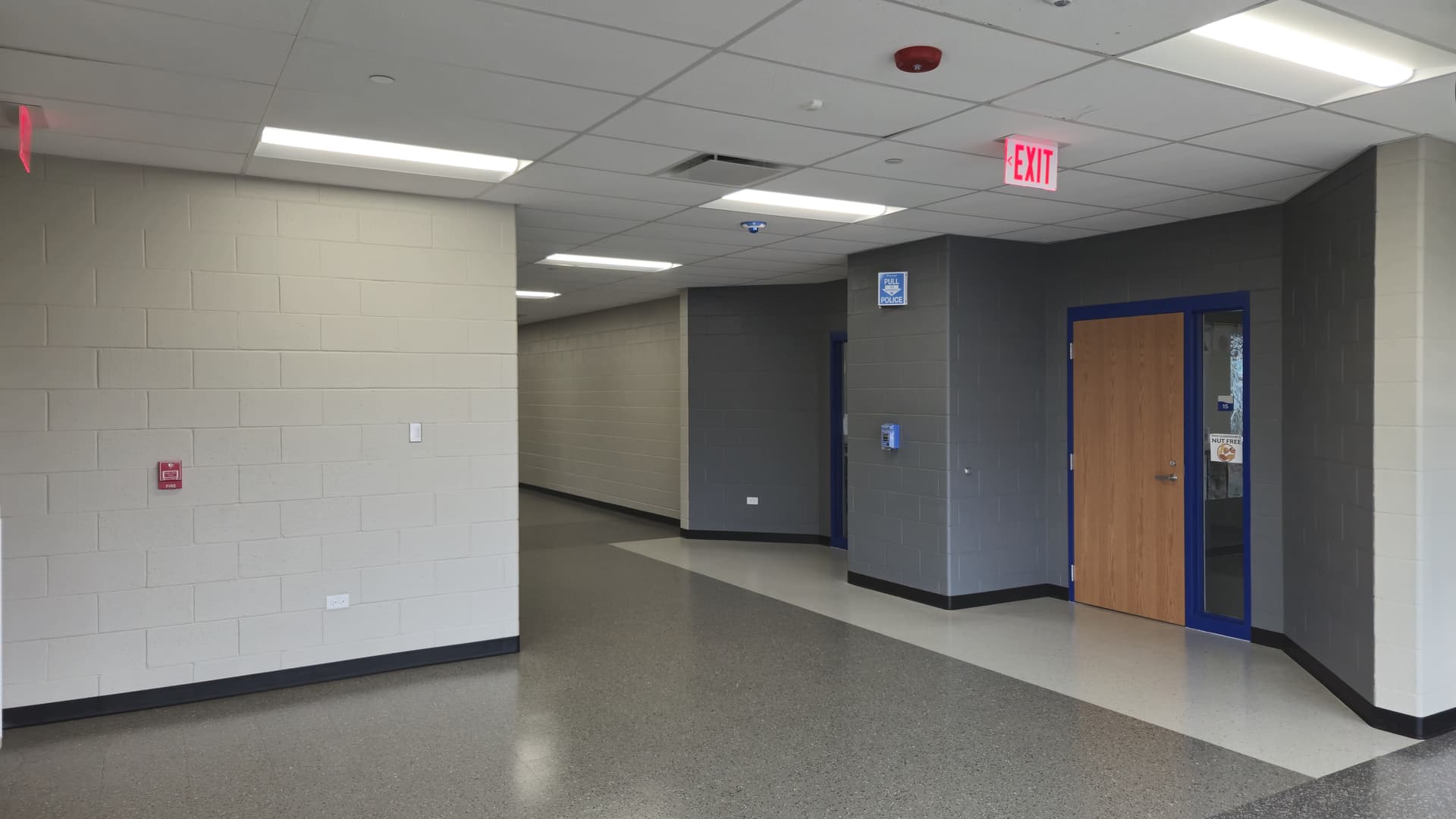Sorry for the bad angle, the strobe wasn’t meant to be the centerpiece here. This is a new addition to a school, completed late last year. Unrelated to the topic, but even for this school, look at how bland those walls are… This was taken about three months after it opened…