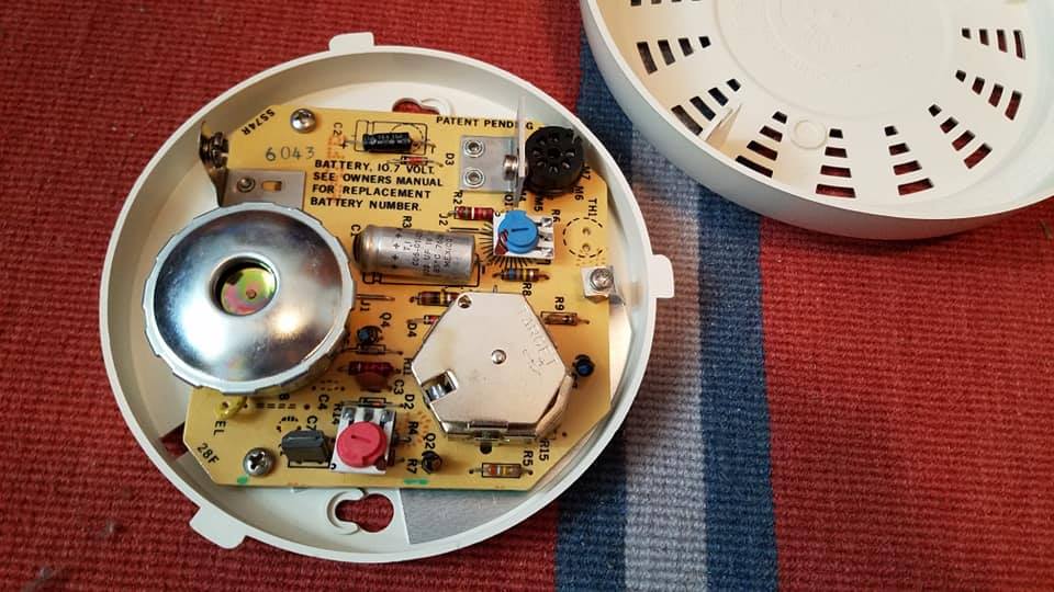 The Vantronics Rescue II residential photoelectric smoke detector (I havent figured out the model number yet) is really cool. It has a blue horn that does continuous and the led is steady when it goes off, It takes two batterys for some reason and I dont really know why.