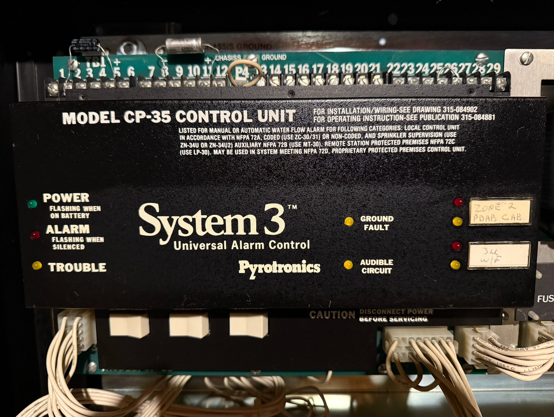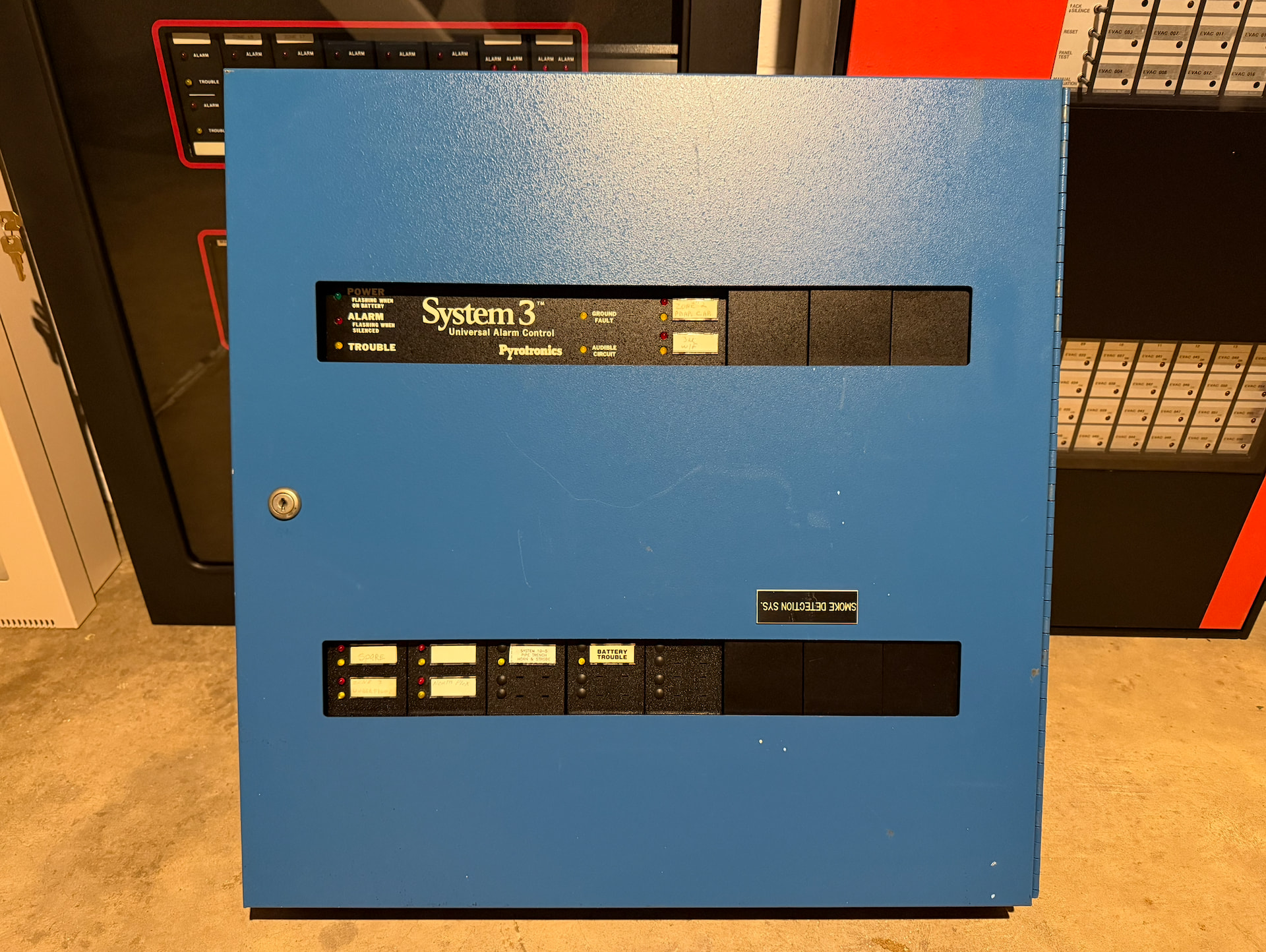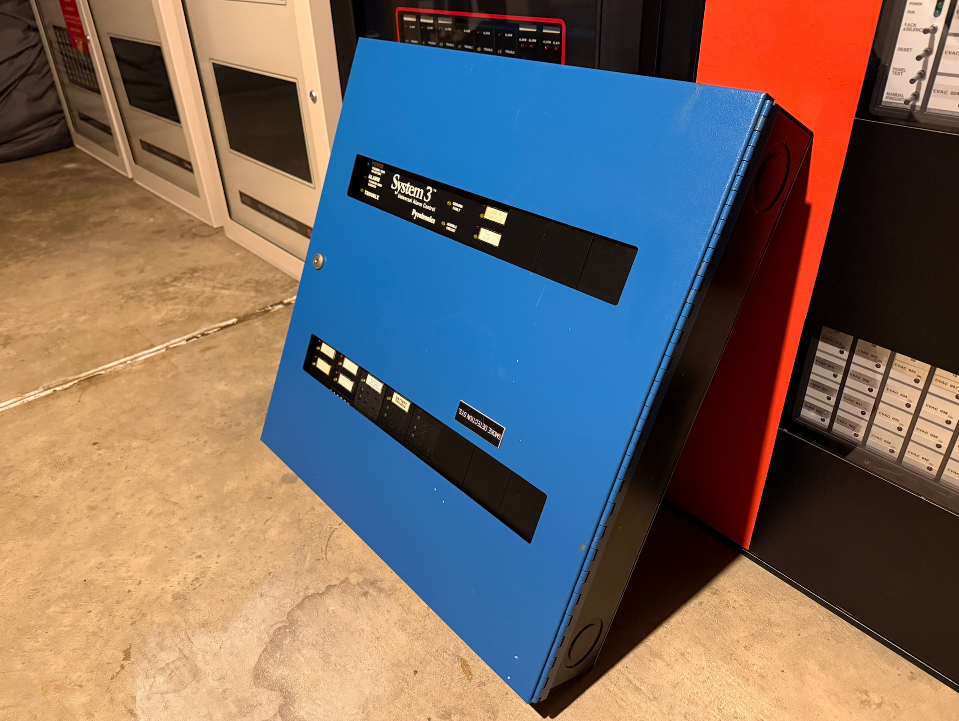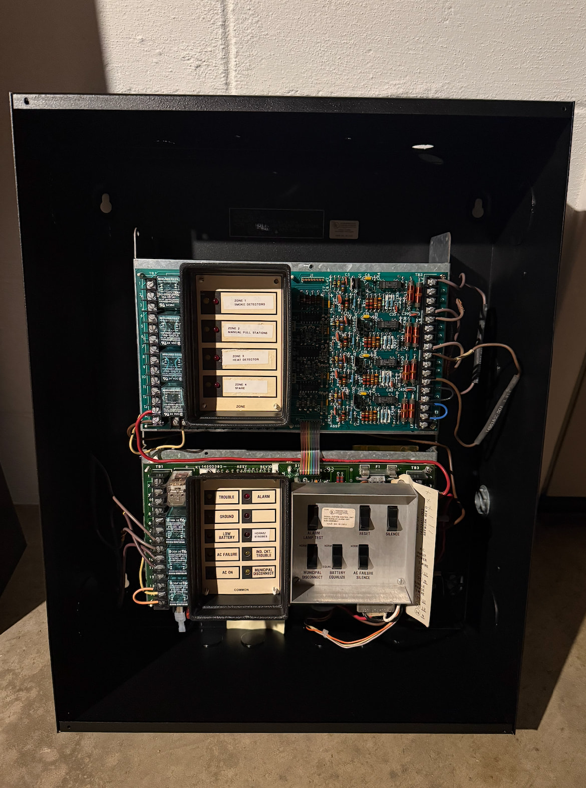 Lastly is a Honeywell W940. Also released by Honeywell between 1977 - 1979, this panel served as Honeywell’s flagship offering from its introduction until it was replaced by the FS90 in 1986. Much like the FS90, these panels could be very large and complex, with support for voice evacuation and integration with Honeywell’s Delta 1000 building automation system. These panels were also completely modular (similar to other panels of the time), making them extremely flexible. This particular W940 was never installed or in service - this panel was used as a demonstrator unit its entire life. It has one zone expander module, and was manufactured in 1984 according to some of the dates on the internal components. Unfortunately, this panel did not come with a door - however, I may be able to obtain one in the not-too-distant future. Out of all three panels, this is the only one I’ve cleaned up completely so far. I’ve even repainted the back can - something I plan on doing with the other panels as well.