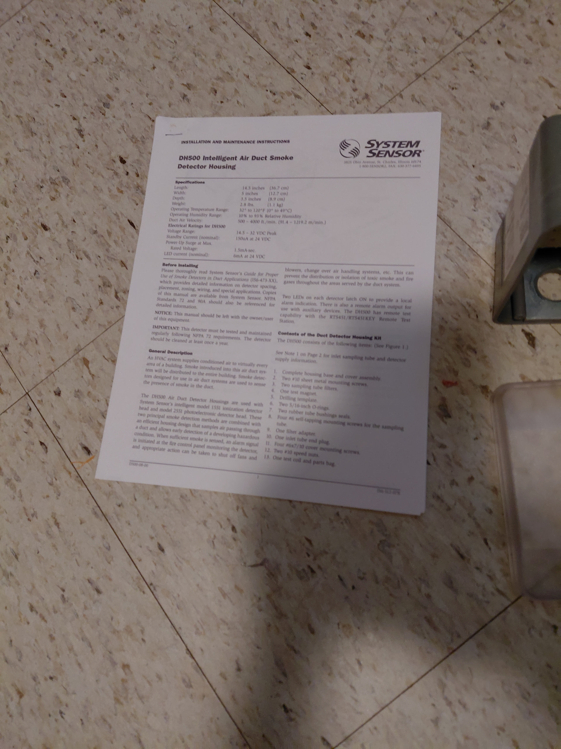 Comes with manual, detector housing. No sampling tubes. Can program address for you. Never tested as I do not have any addressable panels.