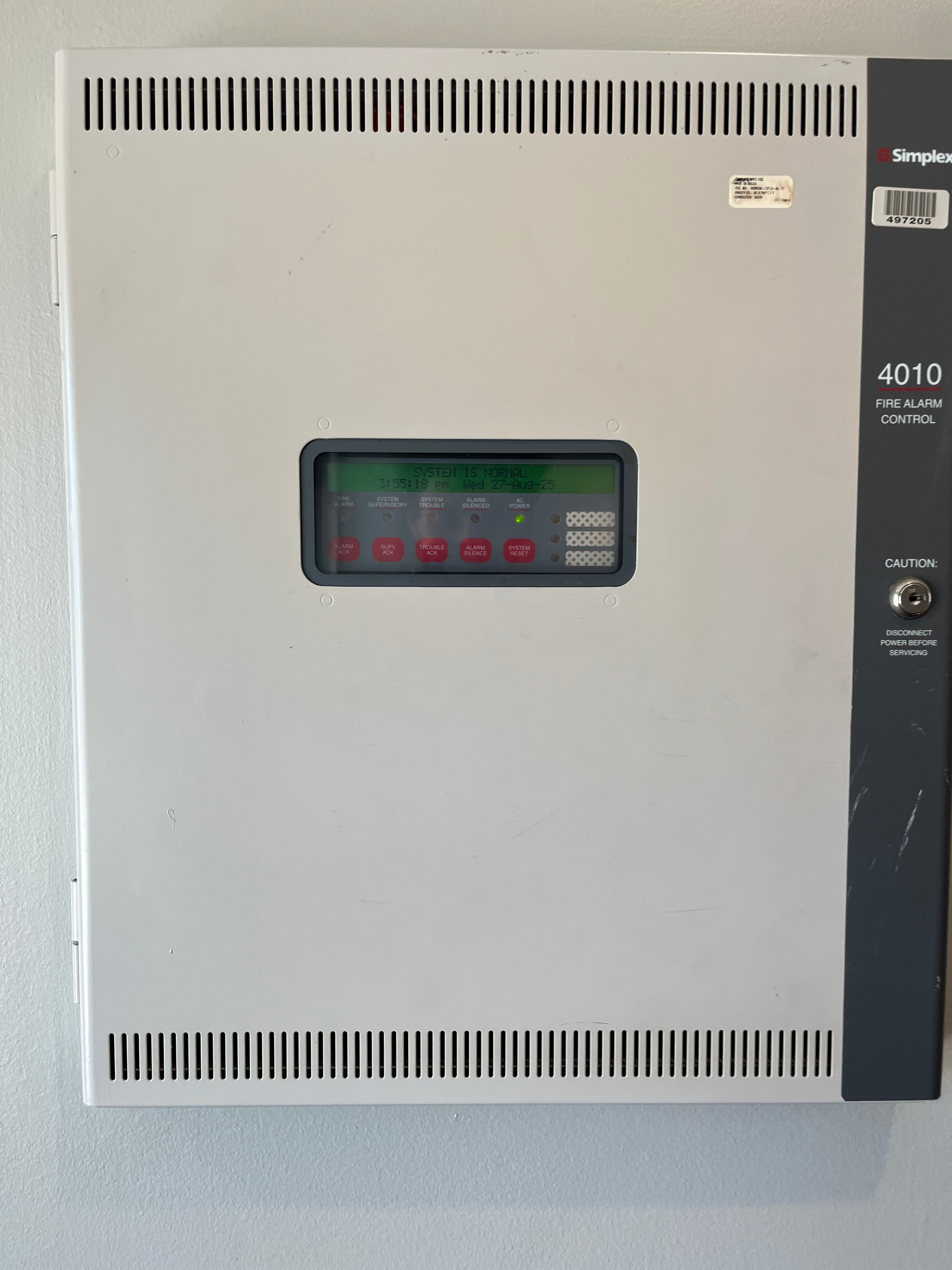 Harry Jack Grey Center (Library and bookstore): Original system likely a 4247-4. Second system a 2120. Current system a 4100ES with a 4009 Idnac extender and a true alert addressable controller.