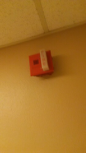 Alarms consist of White Spectralert Advance Ceiling Mounts(low-volume) in the hallways and a non-ADA MA/SS in the cafeteria and in the hallway separating the old wing from the new wing. There are no alarms in the classrooms or bathrooms.