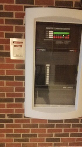 The main building has a unique system. The main panel is a Honeywell/Ademco 5110XM-9 Fire Alarm Control Panel with an older red Ademco alphanumeric keypad located at the main entrance.